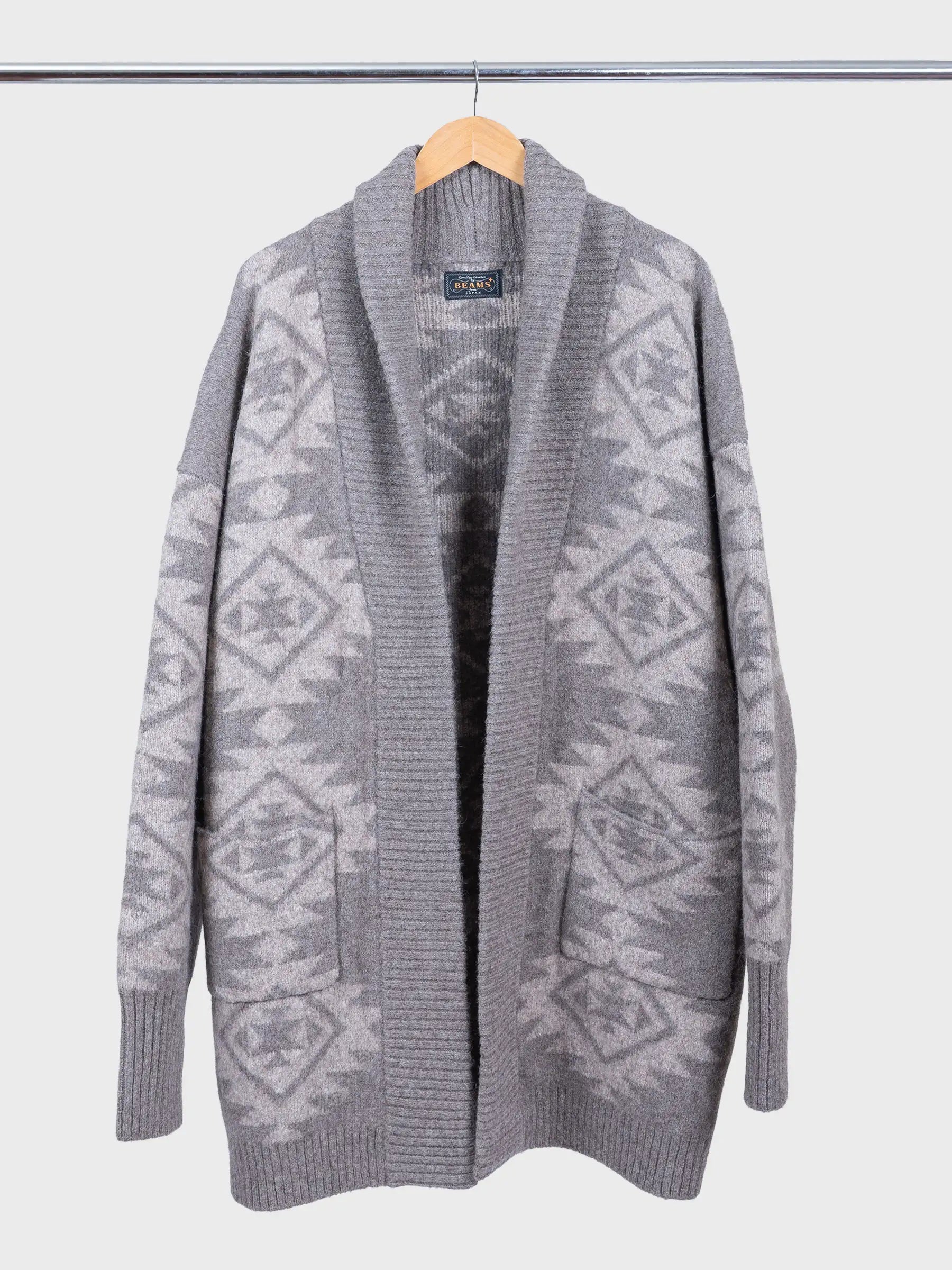 Pièce phare de Beams Plus, veste jacquard à motifs indigènes qui allie un design traditionnel à une texture luxueuse.